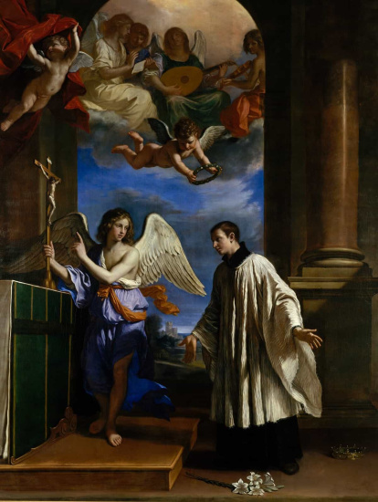 - 'La vocación de San Luis Gonzaga', con su ángel al lado, óleo de Giovanni Francesco Barbieri.
