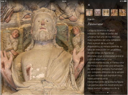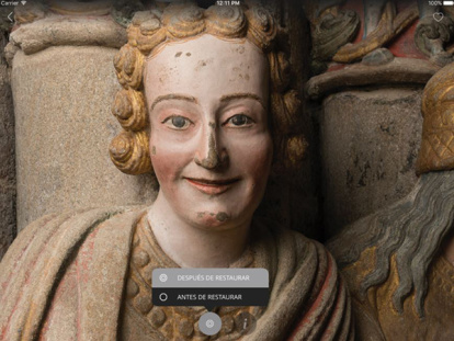 Entre los contenidos que permite la aplicación se encuentra contemplar el antes y el después de cada una de las imágenes restauradas, a la vez que se puede alcanzar un nivel detalle nunca visto hasta ahora. Como explican sus responsables, “no es solo una oportunidad para comprender el alcance del proyecto de restauración, es también un viaje en el tiempo en torno a dos paradigmas: la escultura polícroma que dominó la mayor parte de la historia del arte y la escultura monocroma que tanto el renacimiento italiano como los paradigmas románticos nos han acostumbrado a ver, una forma de reeducar nuestro gusto hacia la apreciación del verdadero color de la Edad Media y del Románico”.