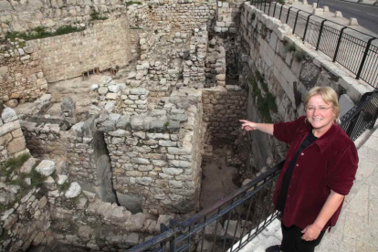 Eilat Mazar señala lo que considera que son las Murallas de Salomón
