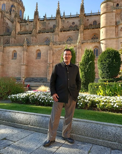 Marcelo Gullo, ante la catedral de Salamanca. El profesor Gullo es doctor en Ciencias Políticas, magister en Relaciones Internacionales y graduado en Estudios Internacionales por la Escuela Diplomática de Madrid. Es profesor de la Escuela Superior de Guerra de Buenos Aires y de la Universidad Nacional de Lanús. Foto: Juan M. Santos.