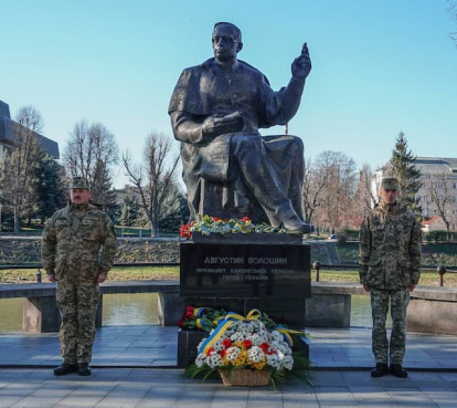 Monumento a Augustin Voloshin en Uhzgorod, en la Transcarpatia, la Ucrania de los Cárpatos o Rutenia que presidió. Foto: Zakarpattya.net.ua