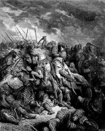 Ricardo frente a Saladino en la batalla de Arsuf, según un grabado de Gustavo Doré (1832-1883).