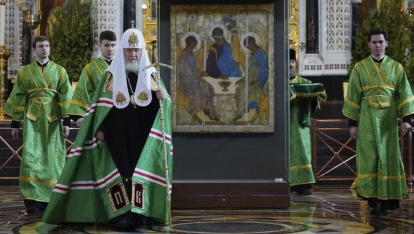 La Trinidad de Rublev ha estado un mes en la catedral moscovita de Cristo Salvador (aquí con el Patriarca Kiril), sin atraer multitudes. Parece contraintuitivo, pero es posible que evangelice más en la Galería Tretyakov que en la catedral o el complejo monástico de la Laura de San Sergio.