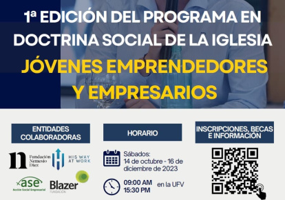 La fecha límite para formalizar la inscripción en el Programa en Doctrina Social de la Iglesia para jóvenes emprendedores y empresarios se extiende hasta el 10 de octubre. Puedes hacerlo a través de este enlace.