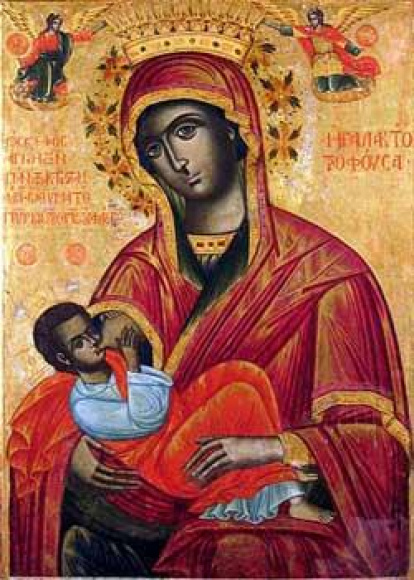 Icono bizantino de la Virgen de la Leche, la Galactotrofusa.
