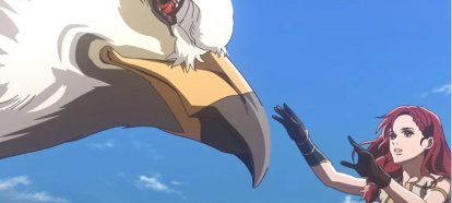 Héra con un águila gigante: esta iconografía no bebe de Tolkien, sino de Hayao Miyazaki, de Mononoke con sus lobos y jabalíes gigantes, y de Nausicaa con sus insectos ohmu. Pero es verdad que en la Tierra Media hay águilas gigantes inteligentes.