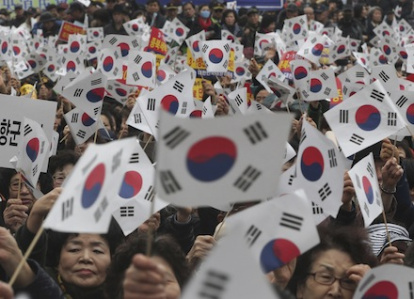 Los colores elegidos indican las dos Coreas y el entrecruzarse de las llamas pretende resaltar el deseo de una inmediata reunificación de las dos partes.