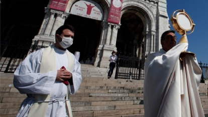 “Sagrado Corazón de Jesús… desde esta basílica, día y noche, tu misericordia brilla en esta ciudad, Francia y en el mundo, en el sacramento de la Eucaristía”, dijo el arzobispo Aupetit en su oración elevada desde el pórtico de la basílica. “Asiste a todos los que están sufriendo las consecuencias de la pandemia y apoya a quienes, de tantas formas, se ponen al servicio de sus hermanos y hermanas. Da salud a los enfermos, fuerza al personal médico, consuelo a las familias y salvación a todos los que han fallecido”.
