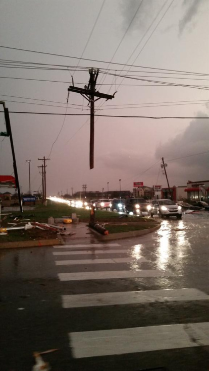 Uno de los tornados arrasó con varios postes de energía eléctrica. Rhodes capturó la imagen en Moore (Oklahoma), entre las calles 119 y Western in Moore, y se convirtió rápidamente en viral.