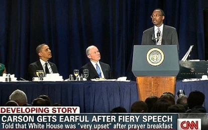 Carson tuvo la valentía de formular severas críticas al plan sanitario de Obama con el presidente delante, lanzando su primer discurso como líder nacional.