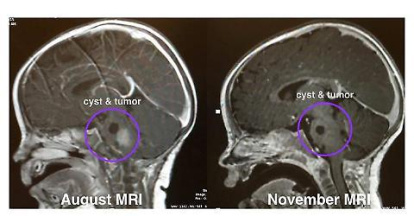 Para demostrar el milagro la mamá de la niña ha publicado en su perfil de Facebook las imágenes de las dos tac, antes y después del supuesto milagro.