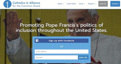 Portada de la página web de Catholics in Alliance for the Common Good [Católicos en Alianza por el Bien Común], con su campaña Promocionando las políticas de inclusión del Papa Francisco en Estados Unidos.