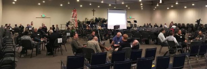 Un encuentro de la comunidad People of Praise; en grupos pequeños, hombres hablan con otros hombres de temas de la fe y la vida cristiana; las mujeres también hablan en sus propios grupos pequeños; la "comunidad" puede sonar extraña en una cultura de individualismo exagerado