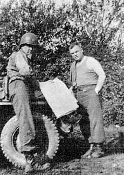El padre Lacy, a la derecha, en camiseta, junto a su capitán, John Raaen, al día siguiente del desembarco. Fueron los primeros en llegar, a las siete y media de la mañana, a la zona que les correspondía en la denominada Omaha Beach. El padre Lacy abandonó la lancha de desembarco en último lugar, y justo antes de ser alcanzada por un obús, según evocó el capitán John C. Raaen Jr. Todo se convirtió en un caos, recuerda The American Catholic, con la playa batida por la artillería y las ametralladoras alemanas. Los heridos y los muertos se acumulaban sobre la arena y en el agua, con aquéllos intentando con sus escasas fuerzas alcanzar suelo firme. No hubo uno que no recibiese el brazo protector del padre Lacy, quien cargaba con ellos hasta ponerlos a salvo y administraba la absolución y la extremaunción a los desahuciados. Cuando su compañía se alejó de la playa, aún batida por el enemigo, el capellán continuó asistiendo a los heridos y moribundos de otras unidades del batallón. El sobrepeso que (sólo hasta aquel día) había divertido a sus hombres no sobrepujó su voluntad ni hizo desfallecer su caridad sacerdotal. |