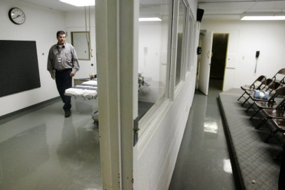 Cámara de ejecución en Oklahoma - a la izquierda la camilla, a la derecha las sillas para el público