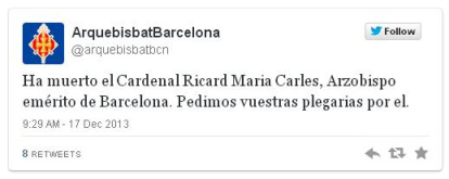 Muere a los 87 años el cardenal Carles, el primer cardenal en tener un blog en lengua española