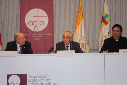 Conferencia sobre Juan XXIII y Juan Pablo II, tras la inauguración del ‘Memorial Padre Ayala’. De izquierda a derecha, Carlos Romero, José Luis Gutiérrez y Antonio Rendón-Luna.