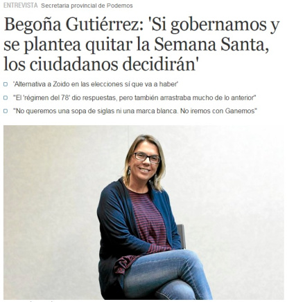 Esa idea pasó al titular como ´Si gobernamos y se plantea quitar la Semana Santa, los ciudadanos decidirán´, y se convirtió en la noticia más leída de El Mundo y de las más comentadas en las redes sociales, especialmente en Andalucía, donde la Semana Santa es un elemento esencial de su cultura, idiosincracia y economía.