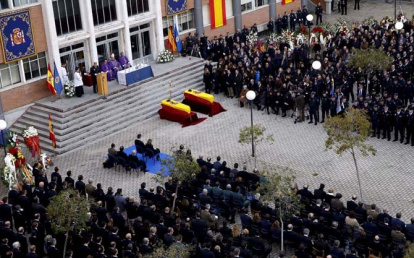 Y lo cierto es que, mientras pronunciaba estas palabras, España transmitía una imagen de unidad contra el terrorismo. También de gratitud y de admiración ante los hombres que se juegan la vida por defender nuestros valores. Entre los cientos de compañeros que acudieron a despedir a los dos policías asesinados se encontraban sus siete compañeros de Kabul, que esta misma mañana han regresado a España para ser relevados. Ellos siguieron la ceremonia religiosa de pie, no quisieron sentarse, en señal de respeto a los dos compañeros caídos.