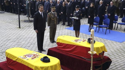 Tras la misa, se tributó un solemne y emotivo homenaje a los caídos, en el que sus compañeros depositaron una corona de laurel ante los féretros. Rajoy entregó a las viudas las medallas de oro y la gorra de cada uno y se cantó el himno fúnebre «La muerte no es el final»: «...No quisieron servir a otra bandera, no pudieron andar otro camino, no supieron vivir de otra manera».