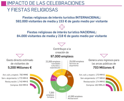 La actividad celebrativa de la Iglesia, según un estudio realizado por la empresa KPMG, supuso en un impacto socioeconómico de casi 5.000 millones de euros de impacto total en el PIB de España (el 0.47%) y la creación de 62.382 empleos totales generados.