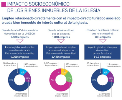La empresa KPMG realizó también un estudio de impacto socioeconómico de los bienes inmuebles de la Iglesia que produjeron un impacto en el PIB de España de 22.620 millones y generaron 225.300 empleos totales.