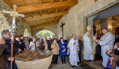 El obispo De Las Heras bendice un pórtico en un pueblo de Mondoñedo
