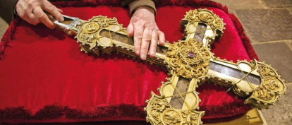 Dentro del relicario dorado en Santo Toribio se guarda la madera, en forma de cruz