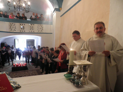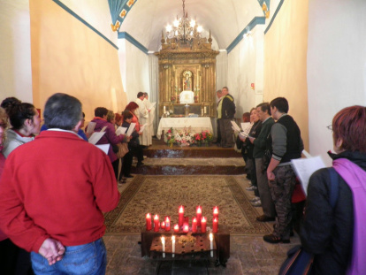 Oración en la ermita con la Virgen de Constantín; ayuda al padre Francisco el párroco de Talamantes, P. Cervando Bedoya