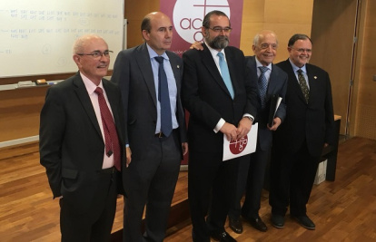 De izquierda a derecha los cinco candidatos que comparecieron en la primera vuelta: José Manuel Otero Novas, Juan Luis Jarillo, Alfonso Bullón de Mendoza, Francisco Rico y Antonio Franco.