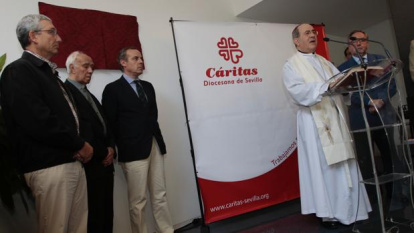Monseñor Asenjo, el arzobispo de Sevilla, en 2016, al bendecir un local de Cáritas Sevilla dedicado a mejorar la empleabilidad de los parados, que atiende una 140 personas al año