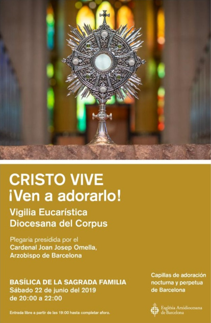 Que la fuerza del Cuerpo de Cristo se transmita a toda Barcelona. Será a través de una gran vigilia de Adoración Eucarística que se ha convocado en la ciudad el 22 de junio, la víspera de la festividad del Corpus Christi, y de 20 a 22 horas en el majestuosa basílica de la Sagrada Familia.