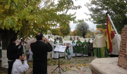 Monseñor Reig Pla, obispo de Alcalá, bendiciendo el cementerio de los Mártires de Paracuellos y a los fieles presentes el pasado año