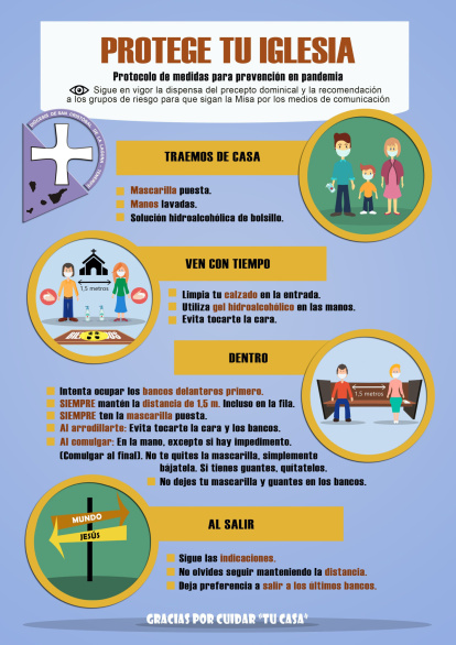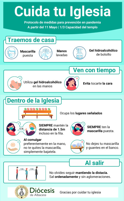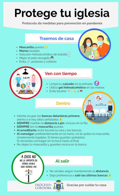 Distintas diócesis han empezado a difundir carteles con protocolos de seguridad, inspirados en una infografía básica de la Conferencia Episcopal, pero no idénticos: