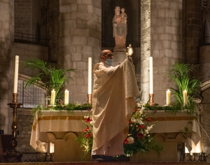 Adoración en Santa María del Mar, Barcelona, después del Corpus, con mascarillas, el cardenal Omella y turnos toda la noche