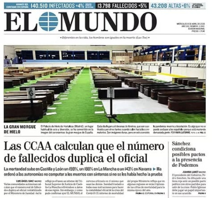 Quizá como contraste trágico, el Premio ¡Bravo! de Foto Periodismo lo ha ganado el fotógrafo Fernando Lázaro por la foto de la morgue del Palacio de Hielo, publicada en la portada de El Mundo, el 8 de abril de 2020, en la que se veían los féretros que se alineaban en este improvisado depósito de cadáveres a causa de la pandemia de coronavirus. Ha habido, en la sociedad y en la prensa, un debate -quizá insuficiente- sobre la visibilidad de los muertos y las víctimas de la pandemia en España, que a día de hoy serían oficialmente unos 46.000 (unos 63.000 en realidad si se cuenta el exceso de muertes con respecto a años anteriores).