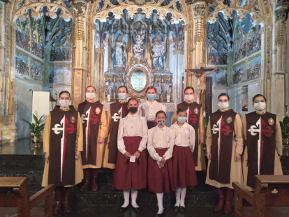 Un grupo femenino de Heraldos del Evangelio visita la capilla de los Corporales en la Basílica de Daroca