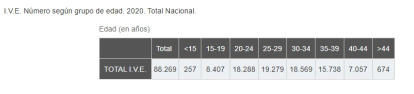 En cuanto a las franjas de edad se dieron 252 abortos en niñas menores de 15 años, por 674 en mayores de 44 años. Las franjas donde más abortos se han producido son las de 20-24 años (18.288), 25-29 (19.279) y 30-34 (15.738).