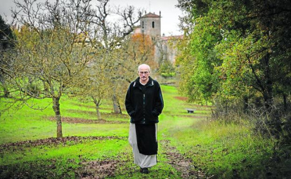 La helada y los pájaros han hecho estragos en los fresales, pero Emiliano, al que cuesta reconocer sin la cogulla -la túnica blanca de mangas anchas que llega hasta los tobillos- se afana con las nueces. Embutido en su mono de trabajo y con katiuskas, recorre el suelo de rodillas, mientras las campanas derraman sus tañidos sobre el cementerio donde comparten lecho los monjes muertos y republicanos represaliados en la Guerra Civil. En total, cuatro fosas comunes en un rectángulo verde que han sido objeto de excavaciones.