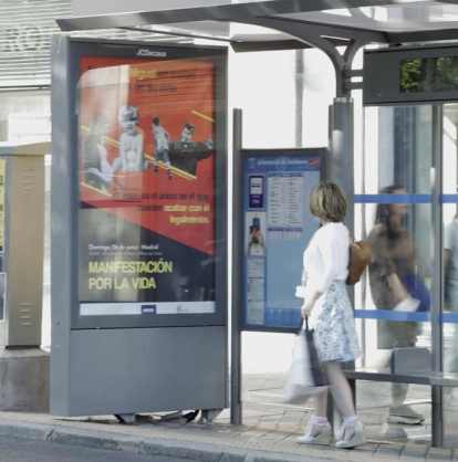 Carteles provida en marquesinas de Madrid de la ACdP en vísperas de la manifestación del 26 de junio.