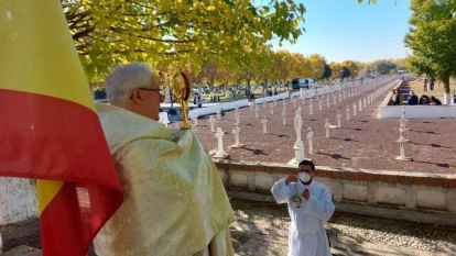El obispo Reig Pla bendice las fosas comunes de Paracuellos, que es casi con seguridad la mayor concentración de mártires cristianos en Europa (excepto quizá Bútovo, en Rusia, donde fueron asesinados mil clérigos e innumerables laicos).