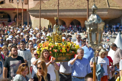 Procesión con la Virgen de Torreciudad en el santuario; la original es una talla románica de unos 900 años. La familia de San Josemaría le atribuía haberle curado de una grave enfermedad siendo un niño de 2 años; unos 200.000 peregrinos visitan el lugar cada año.
