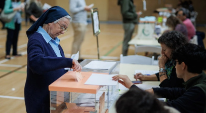 Una religiosa votando en España... todos los cristianos están llamados a participar en la vida pública y política con coherencia a las enseñanzas cristianas en defensa de la fe, la vida, la familia y el bien común.