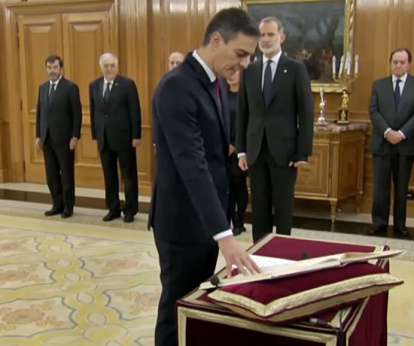 El presidente del Gobierno, Pedro Sánchez, promete su cargo ante el Rey.