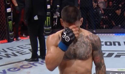 Topuria hace la señal de la cruz al modo ortodoxo después de uno de sus combates.