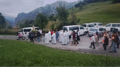 Procesión con la Virgen del Carmen, entre los Picos de Europa, en Asturias; hacía años que no se celebraba esta procesión porque faltaba quien pudiera llevar la imagen. Los estudiantes recuperaron una experiencia aplazada mucho tiempo.