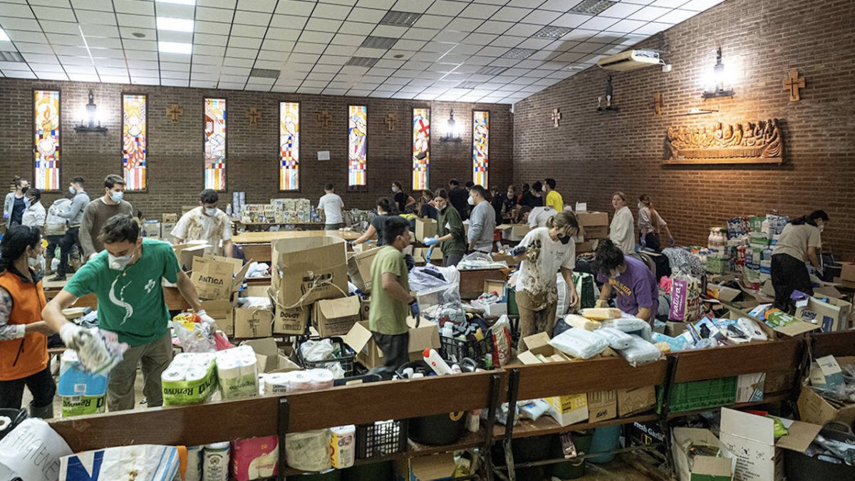 La Iglesia es la única que no falta allí donde hay un hombre que sufre. Primero fue la Parroquia de La Torre, y ahora la parroquia María, Madre de la Iglesia de Catarroja las que han habilitado el templo parroquial para la entrega de alimentos, ropa y productos básicos.