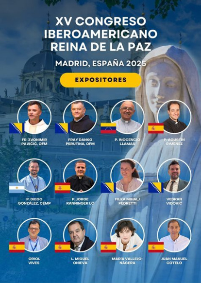 El congreso contará, entre otros, con la presencia de fray Zvonimir Pavičić, párroco de Medjugorje; fray Danko Perutina, presidente del Centro Informativo Mir Medjugorje y fundador de la FCM; el padre Inocencio Llamas, sacerdote asesor de la FCM para Iberoamérica y gran predicador de la espiritualidad de Medjugorje en el mundo; el padre Agustín Giménez, profesor de la Universidad de San Dámaso de Madrid y asesor espiritual de la FCM en España; el padre Diego González, de la Comunidad Evangelizadora Mensajeros de la Paz en Argentina; el padre Jorge Ranninger LC, director del colegio Everest en Madrid y promotor del apostolado del Sagrado Corazón de Jesús; y Vedran Vidović, director del Centro Informativo Mir Medjugorje.