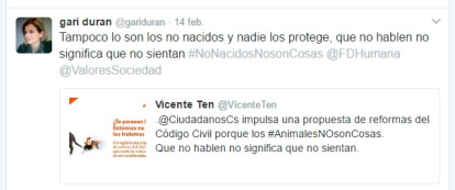 Gari Durán tuitea mensajes de defensa de la vida y protesta por la inacción de los políticos en este sentido