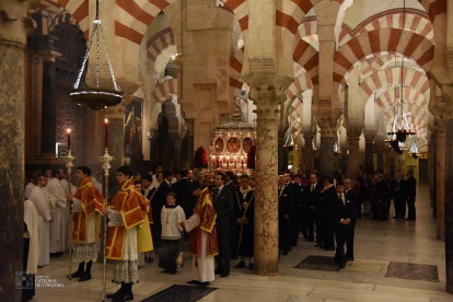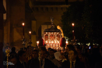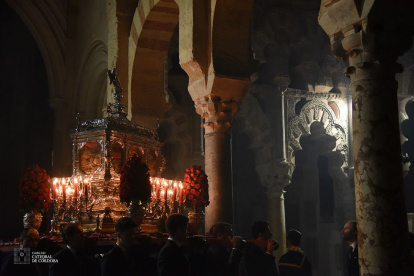 Por la noche, las reliquias de los Santos Mártires cordobeses salieron en procesión por el Patio de los Naranjos de la Mezquita- Catedral en un acto organizado por la hermandad de la Misericordia.